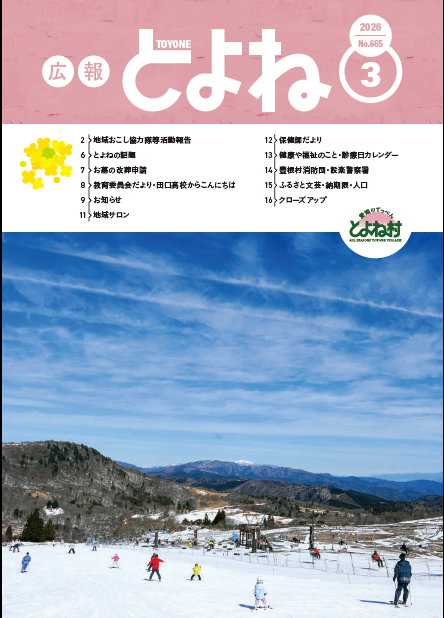 お知らせ 新着情報 イベント 募集情報 新着情報 現在、新着情報はございません。 新着情報一覧を見る RSS イベント 現在、イベントはございません。 イベント一覧を見る 募集情報 現在、募集情報はございません。 募集情報一覧を見る 情報を探す キーワード検索 よく検索される言葉: 税金 補助金 ふるさと納税 窓口 例規集 ページID検索 ページID検索とは? 目的・場面別に探す 妊娠・出産 入園・入学 結婚・離婚 就職・退職 住まい・引っ越し 税金 高齢・障がい おくやみ 生活便利ナビ 戸籍・住民票 届出・手続き ゴミの出し方 公共交通 相談 各組回覧 広報とよね 令和8年3月号(PDFファイル:6.7MB) バックナンバー ピックアップ 豊根村について 村政情報 村長の部屋 村議会 同報無線放送 人口と総世帯数 令和8年1月31日時点 男性 434人 女性 448人 人口 882人 世帯数 434世帯 YouTube 豊根村【公式チャンネル】 Instagram 愛知県豊根村 Facebook 豊根村役場 愛知のてっぺんギャラリー 愛知のてっぺんギャラリー一覧を見る 投稿フォームはこちら 関連リンク 広告 広告募集について