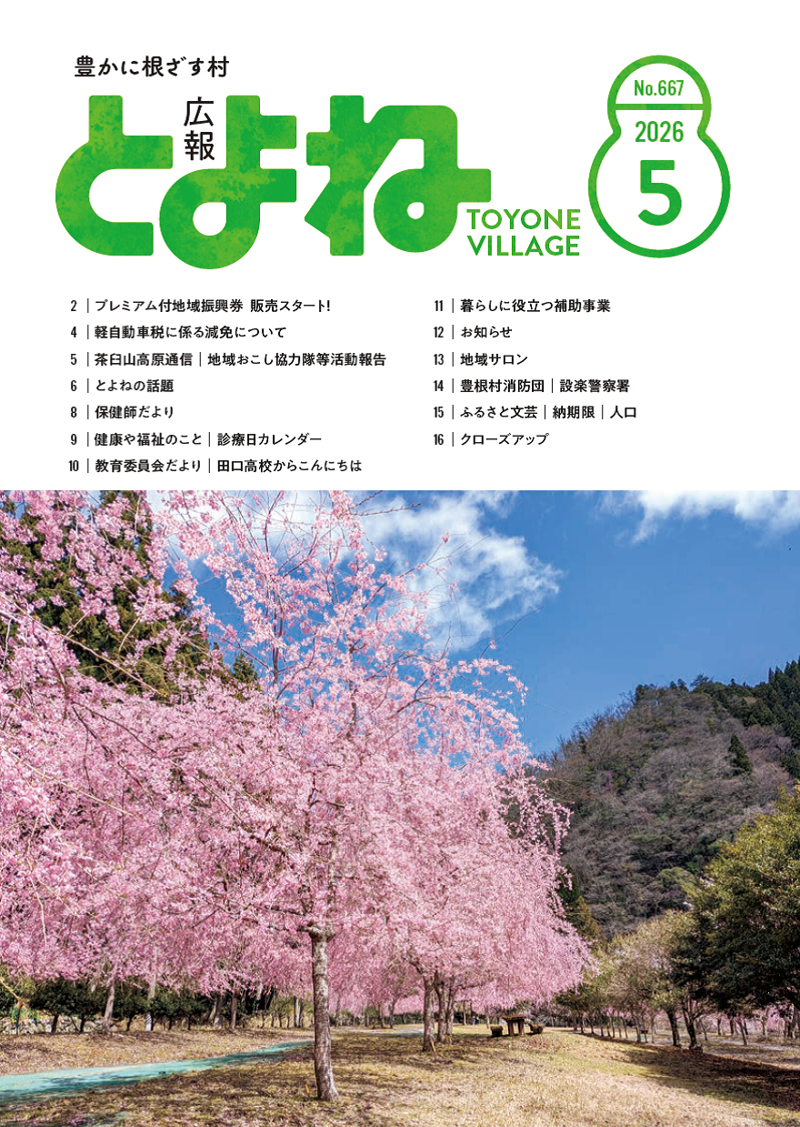 お知らせ 新着情報 イベント 募集情報 新着情報 現在、新着情報はございません。 新着情報一覧を見る RSS イベント 現在、イベントはございません。 イベント一覧を見る 募集情報 現在、募集情報はございません。 募集情報一覧を見る 情報を探す キーワード検索 よく検索される言葉: 税金 補助金 ふるさと納税 窓口 例規集 ページID検索 ページID検索とは? 目的・場面別に探す 妊娠・出産 入園・入学 結婚・離婚 就職・退職 住まい・引っ越し 税金 高齢・障がい おくやみ 生活便利ナビ 戸籍・住民票 届出・手続き ゴミの出し方 公共交通 相談 各組回覧 広報とよね 令和8年4月号(PDFファイル:7.7MB) バックナンバー ピックアップ 豊根村について 村政情報 村長の部屋 村議会 同報無線放送 人口と総世帯数 令和8年3月31日時点 男性 427人 女性 443人 人口 870人 世帯数 432世帯 YouTube 豊根村【公式チャンネル】 Instagram 愛知県豊根村 Facebook 豊根村役場 愛知のてっぺんギャラリー 愛知のてっぺんギャラリー一覧を見る 投稿フォームはこちら 関連リンク 広告 広告募集について